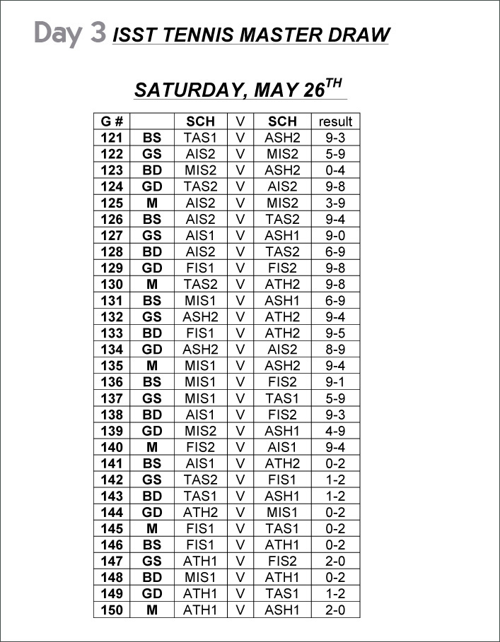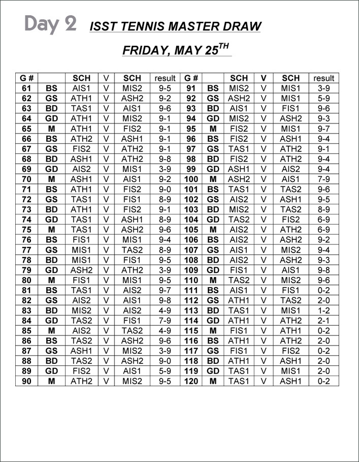 Οι Σχολές Αμερικάνικης Παροικίας Αθηνών (ACS Athens) διοργάνωσαν στις 24-25-26 Μαΐου 2012, το Διεθνές Τουρνουά Τέννις (ISST Div. II Tennis Championships), με την συμμετοχή ακόμα πέντε σχολείων από την Ευρώπη. Συμμετείχαν 96 αθλητές – μαθητές ηλικίας 15-18 ετών. Τους αθλητές συνόδευσαν και 12 προπονητές.